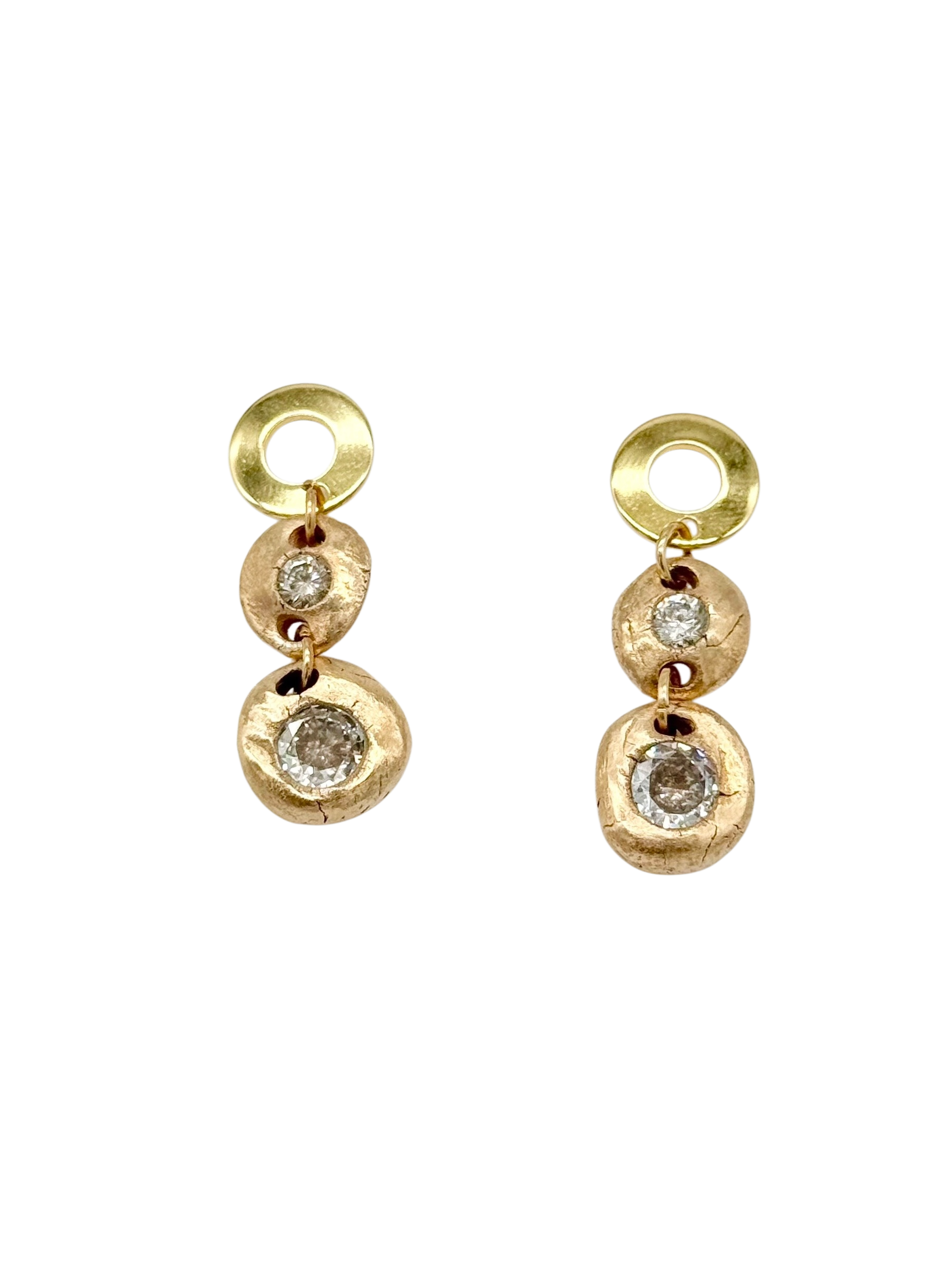 The Lluvia de Luz earrings are a delicate, handcrafted piece made in bronze and adorned with radiant white lab-created gems that capture and reflect the light beautifully. Their base is gold plated and hypoallergenic, combining refined craftsmanship with a luminous, timeless design.